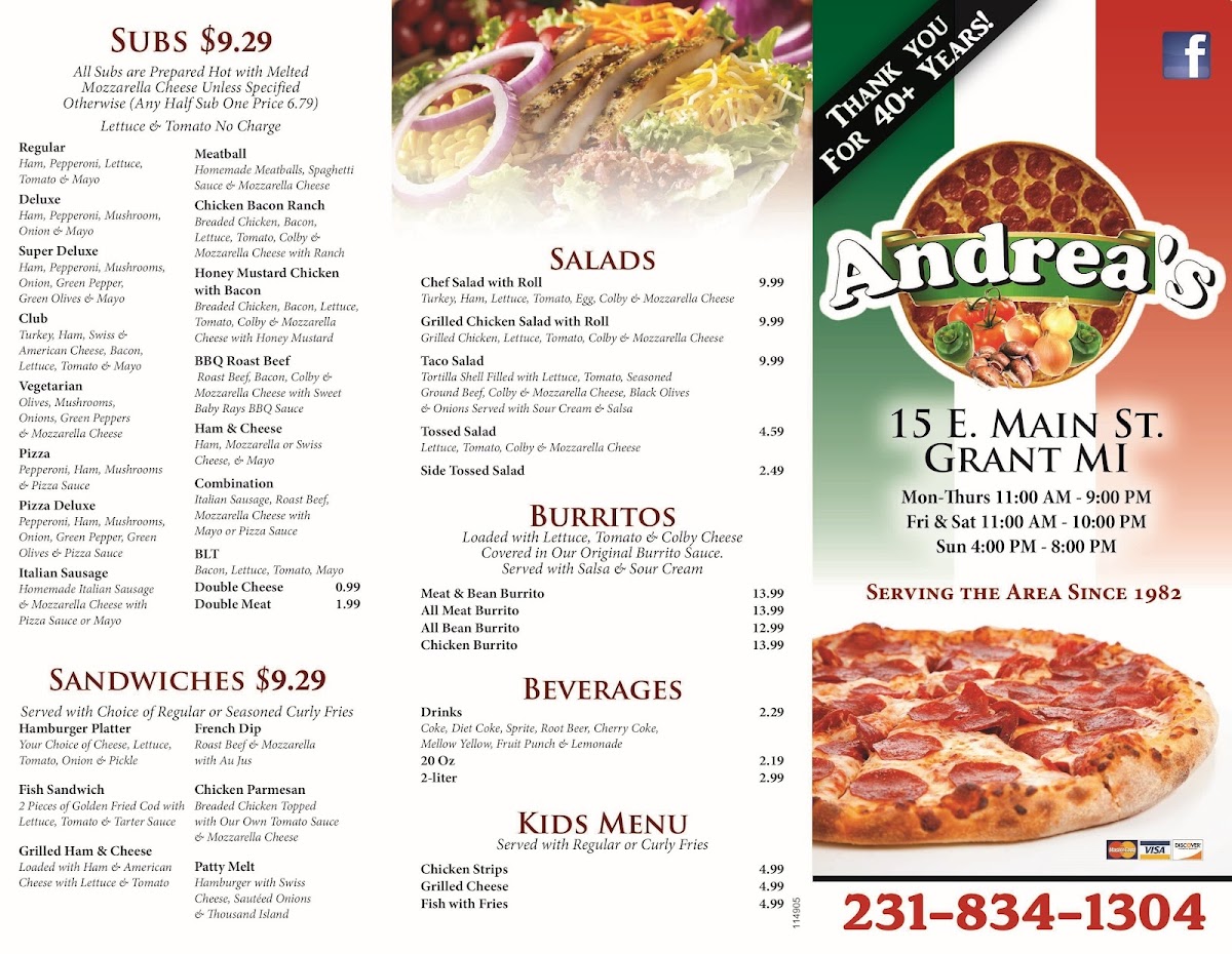 Welcome to Andreas Pizza & Italian Restaurant-Grant, a hidden gem in the heart of Grant, Michigan. Located at 15 E Main St, this family-friendly restaurant offers a delicious array of Italian classics. Their signature pizzas steal the spotlight, featuring a perfect blend of crust, sauce, and toppings that delight pizza enthusiasts like Molly Ellick, who praises the speedy service and friendly staff.